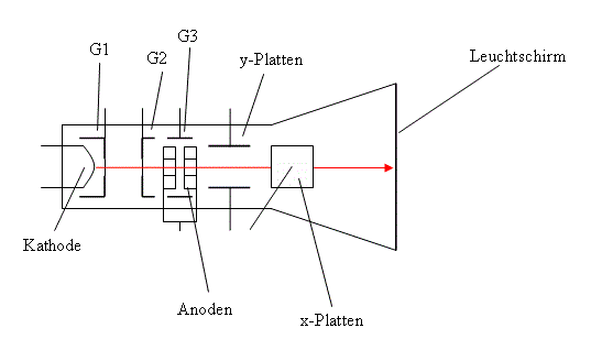 auseinander laufen, weshalb direkt nach der Kathode sich Gitter 1 (Wehneltzylinder) befindet, das die Elektronen zu einem Strahl bündelt.